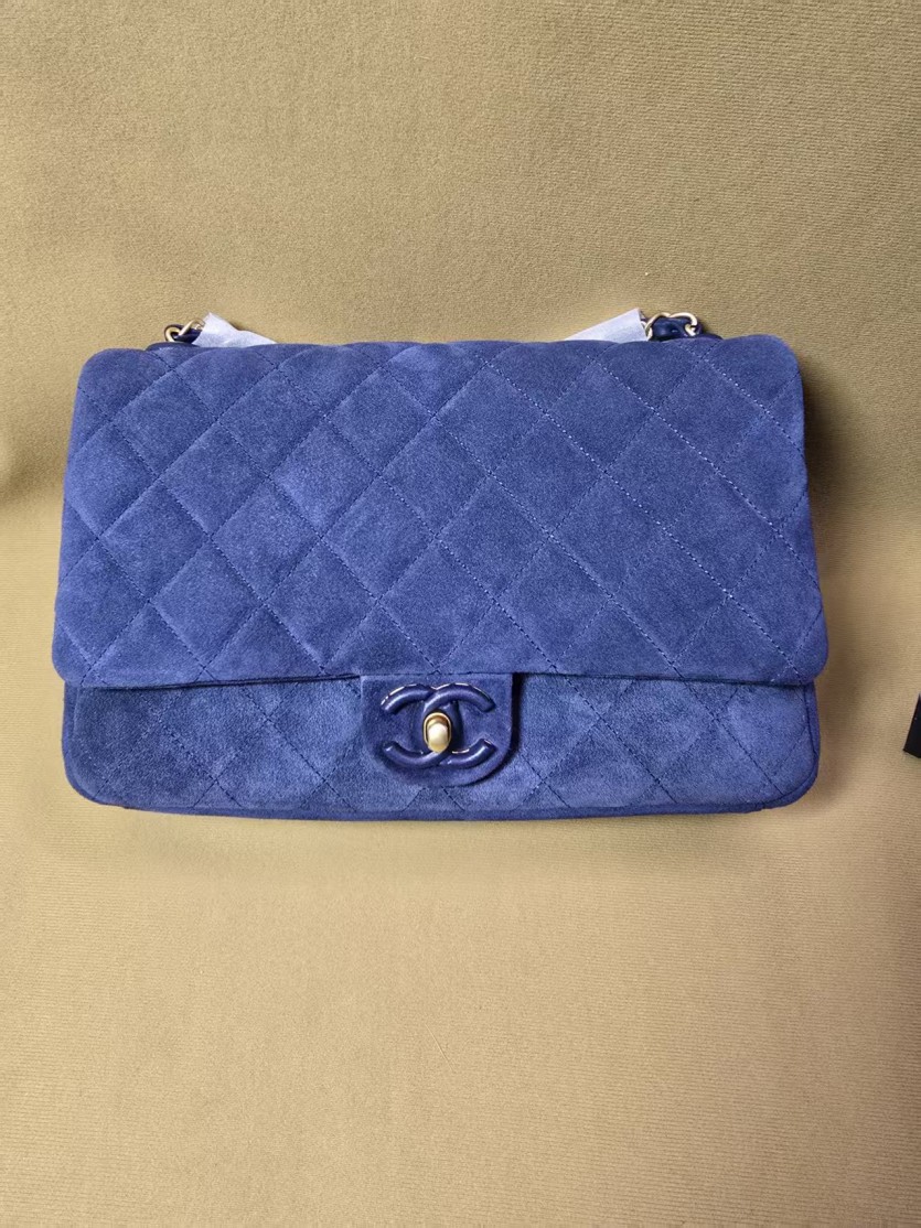 샤넬26ss 스웨이드 플랩백 블루 26cm