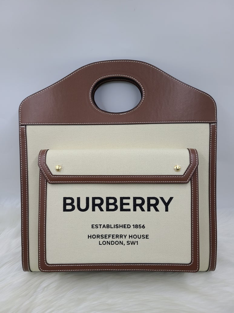 버버리 미디움 투톤 캔버스 레더 포켓백입니다